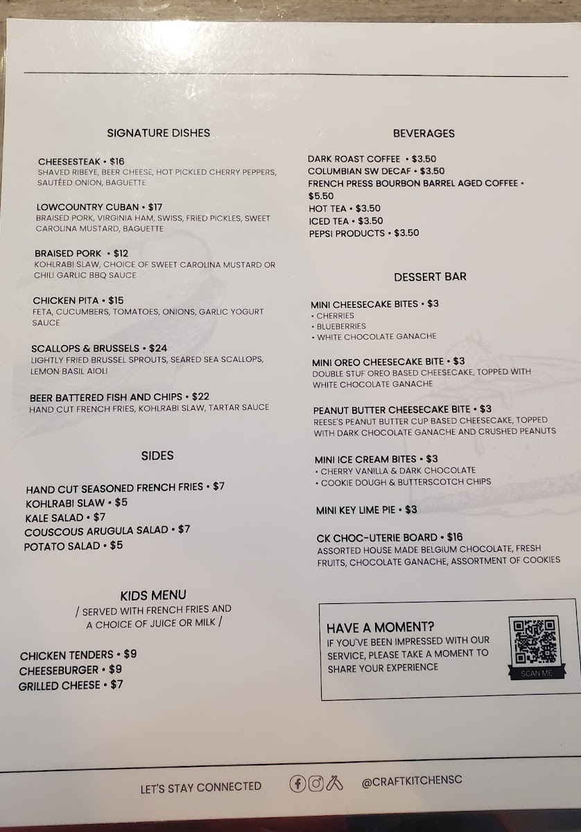 Introducing "Craft Kitchen," a culinary gem located in Bluffton, SC, where comfort meets flavor. Patrons are welcomed into a clean, inviting space that immediately sets the tone for a delightful dining experience. The menu features an impressive array of dishes, offering everything from delectable zucchini appetizers to mouthwatering southern fried chicken sandwiches.